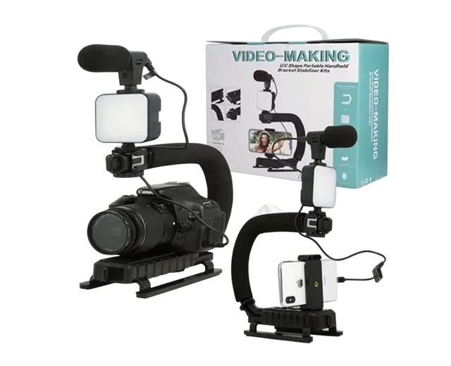 Estabilizador de video AY-49U, cardán de mano en forma de U/C con luz de 36 LED, micrófono y soporte para móvil para videografía al aire libre, vloggers y youtubers para teléfonos inteligentes y DSLR.